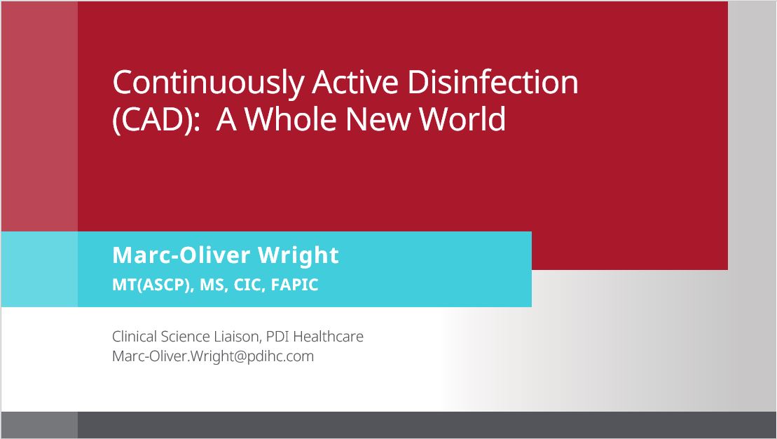 - Describe the science of continuous active disinfection (CAD) and differentiate it from traditional surface disinfection in healthcare today.