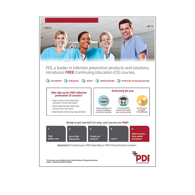 PDI, a leader in infection prevention products and solutions, introduces FREE Continuing Education (CE) courses.